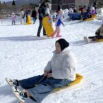 いきなりスキーやスノーボードは危ないので、「そり」を借りて雪と戯れてもらうことにしました。